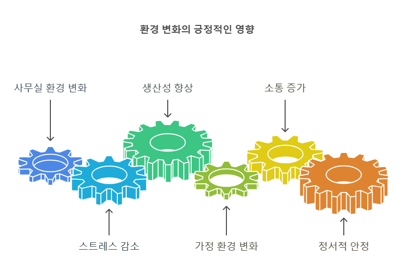 - 업무 효율 개선: 사무실의 가구 배치와 조명 개선 후, 업무 스트레스가 감소하고 생산성이 향상되었다는 보고가 있습니다.