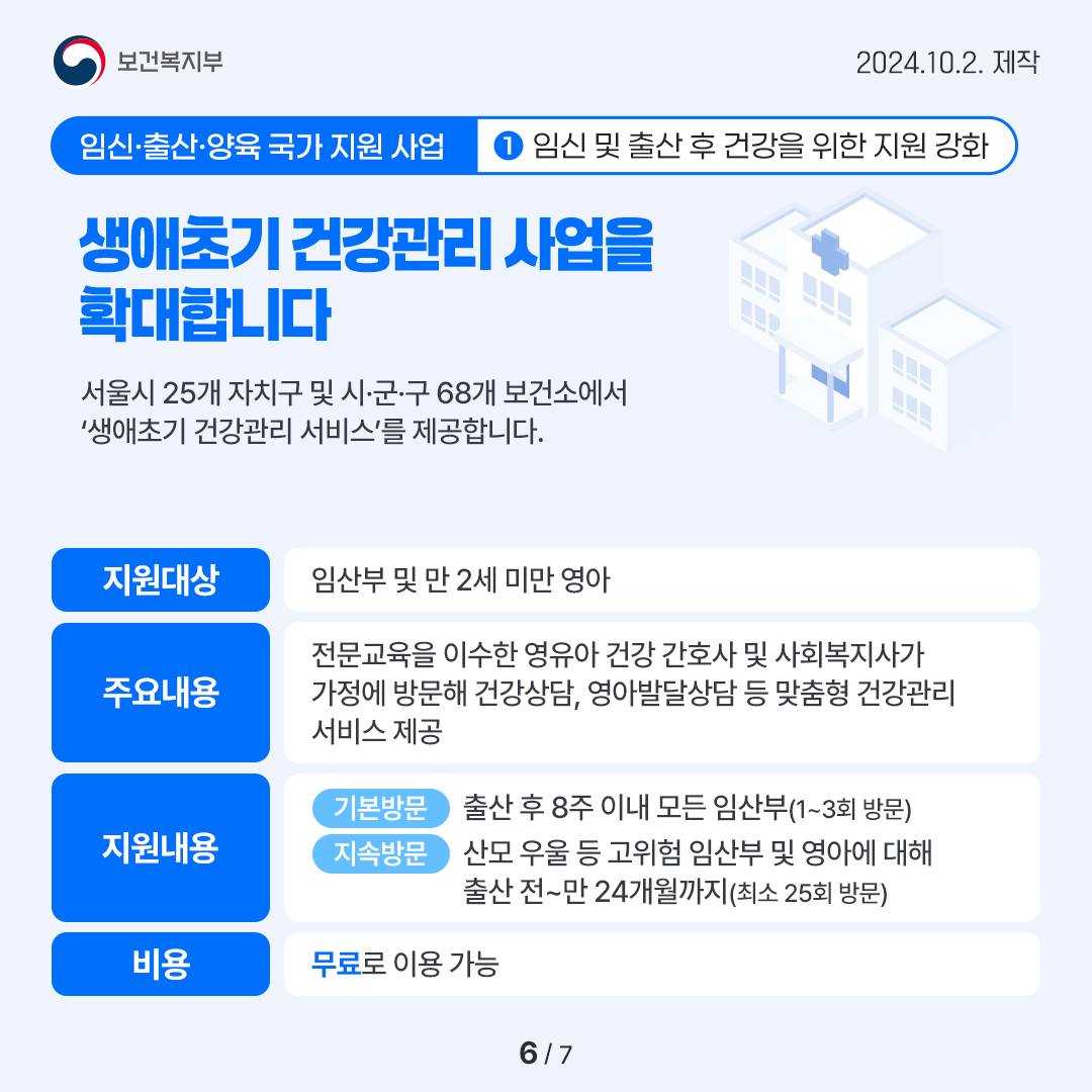 서울시 25개 자치구 및 시·군·구 68개 보건소에서 ‘생애초기 건강관리 서비스’를 제공합니다.