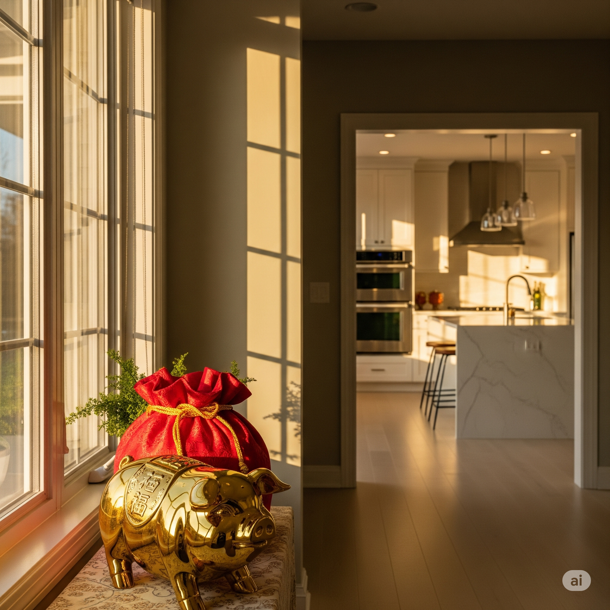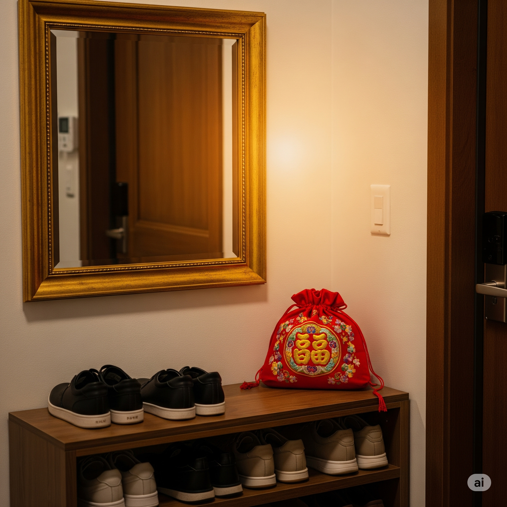 🔹 수납장 옆에 작은 황금 테두리 거울을 놓아, 돈이 모이는 공간에 복사 에너지를 더하는 전략도 유효합니다.