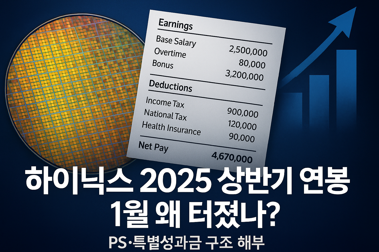 하이닉스의 ‘연봉’은 ①기본급(월) + ②수당/업적급(월) + ③성과급(연 1회 중심: PS, 특별성과급 등)으로 구성됩니다. 뉴스로 공개된 실제 2025년 1월 명세서 사례를 보면,