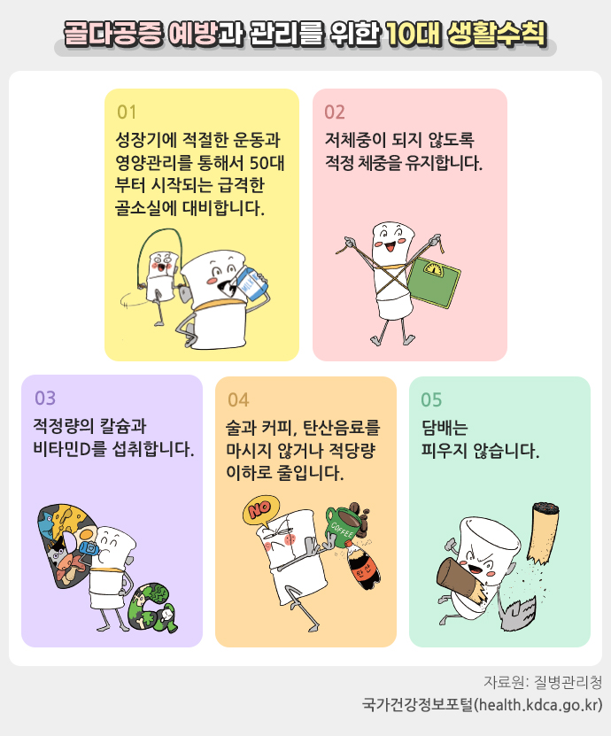 골다공증 예방과 관리를 위한 10대 생활수칙